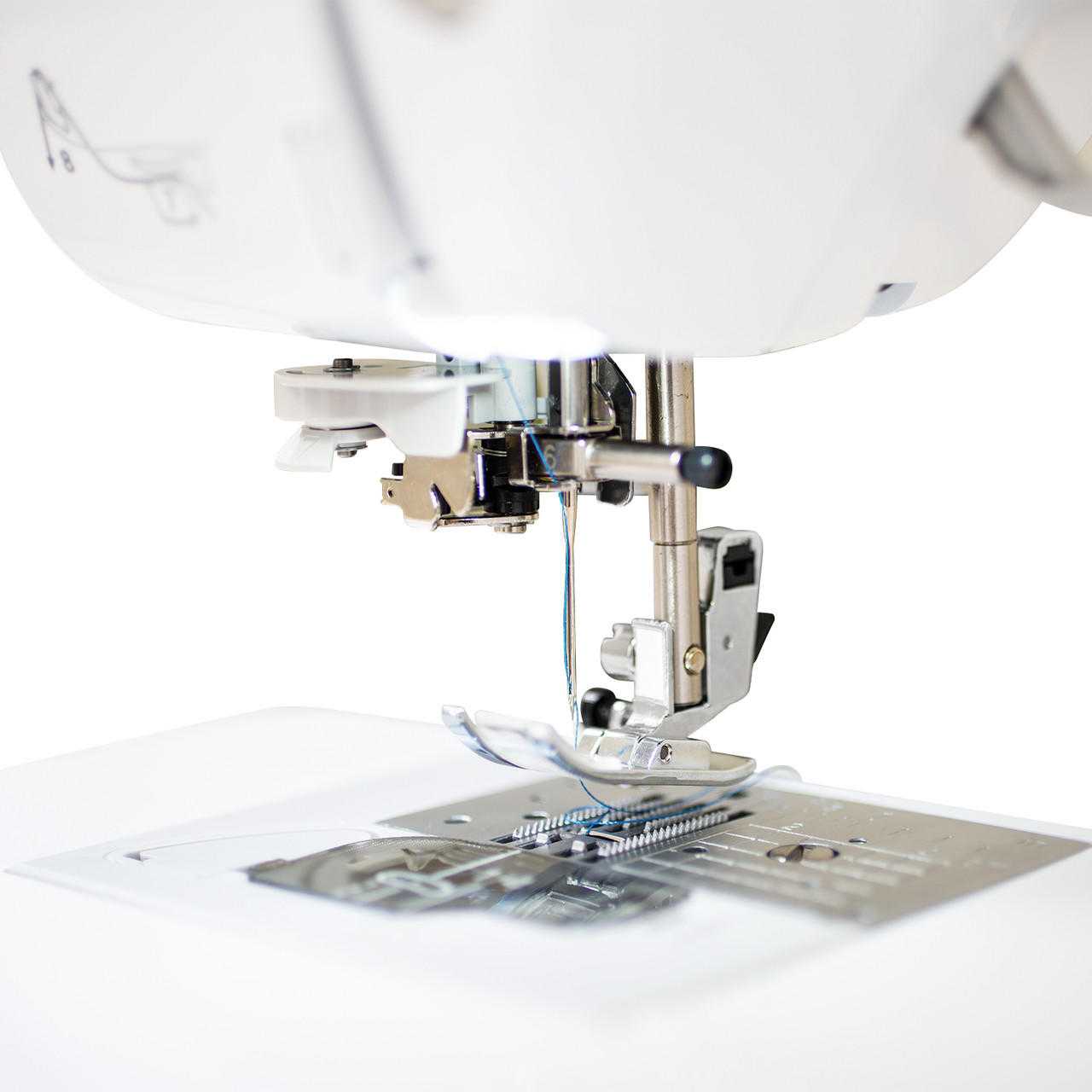 + One of the most common issues we see is when the user accidentally threads the machine and forgets to properly thread the take-up lever. All machines, including the Jubilant, are susceptible to this problem. However, the take-up lever on the Jubilant is easy to see and thread properly.