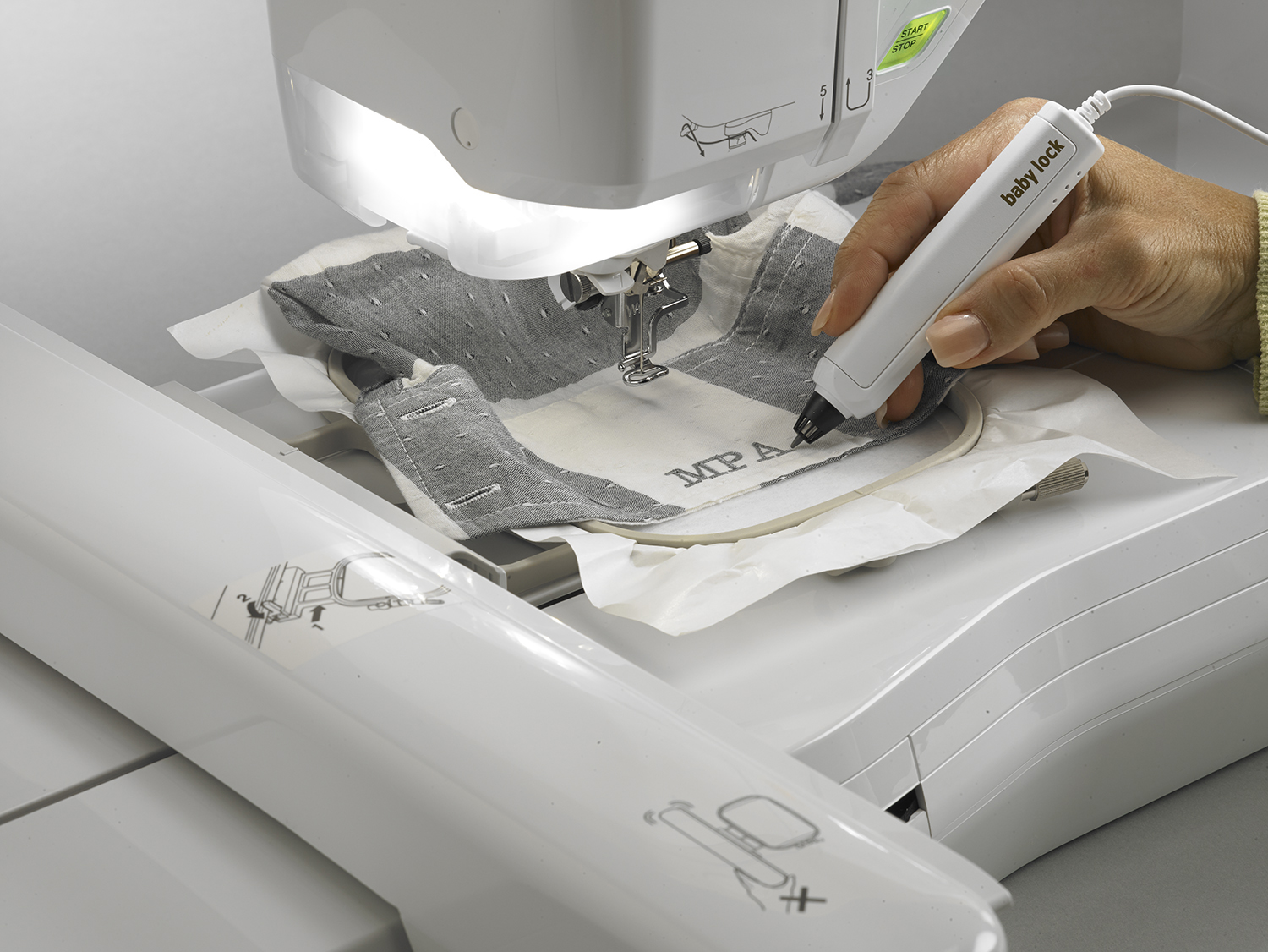 The Sensor Pen plugs into your machine for adjusting the laser guide, setting the end of your stitch and other stitch adjustments.
