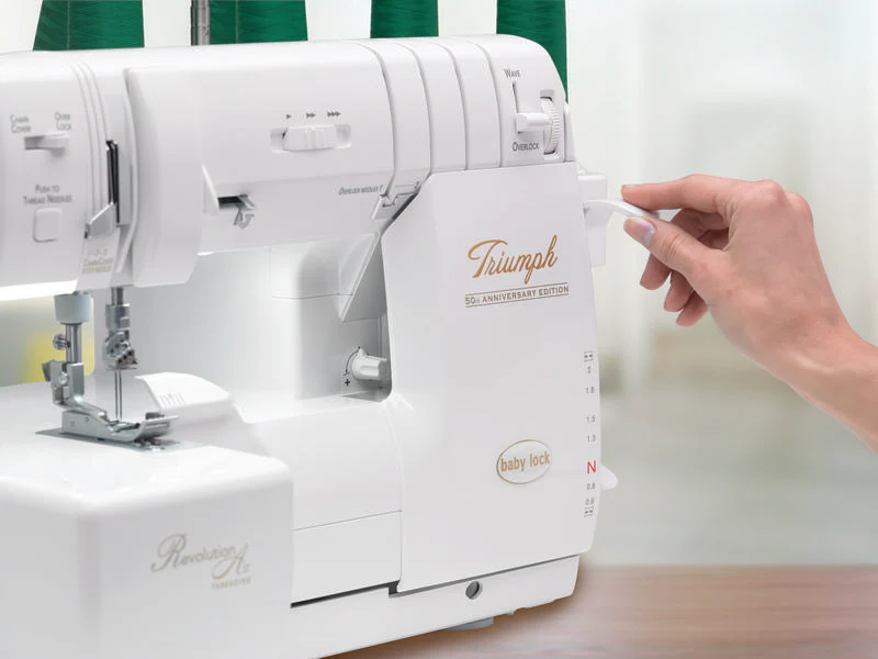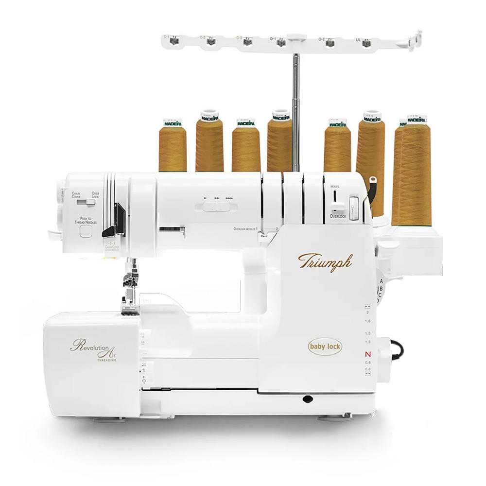 Experience precision and creativity with the Baby Lock Triumph, featuring ExtraordinAir Threading, 8-thread versatility, automatic thread delivery (AKA auto tension) and coverstitch capability.