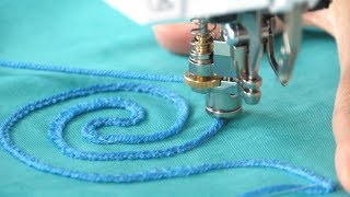 With the Bernina Couching Inserts, you can sew yarns, cords, and felt threads on to your project using free-motion technique.