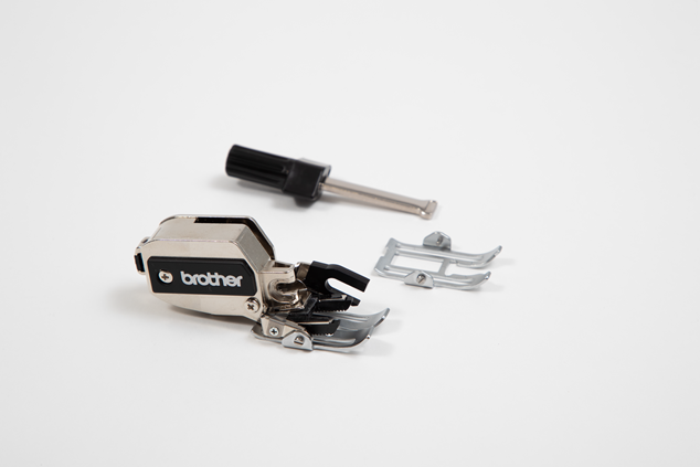 The Brother Walking Foot is wonderful for fabrics that stretch or slip easily, such as velvet or corduroy. This foot has a set of feed dogs that help feed multiple layers evenly without shifting. This walking foot comes with two easily interchangeable soles, a standard sewing sole and an open toe sole.