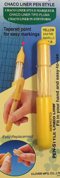 The Chaco Liner Pen marks your fabric with chalk and doesn’t leave a mess on your finger tips. Chalk dispenses through a tapered roller wheel.