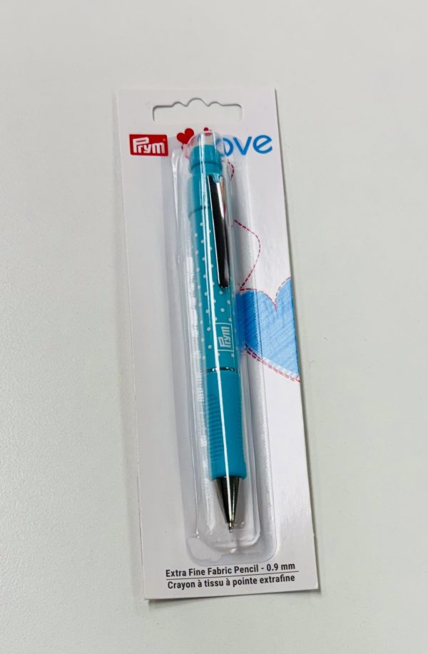 This Extra Fine Marking Pencil from Prym Love is a high quality mechanical pencil with white ceramic lead for making fine marks on both light and dark fabrics. 0.9mm lead is made from water-soluble dyes. Marks can be remove with washing, or lightened with the retractable eraser. Always test to be certain marks can be removed satisfactorily. This pencil also features a soft grip for comfort.