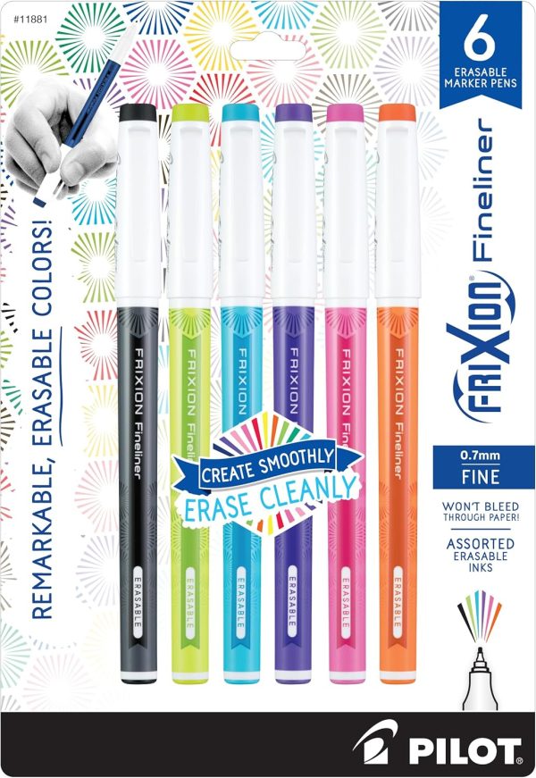 Frixion Fineliner Erasable Pens, 6 Pack