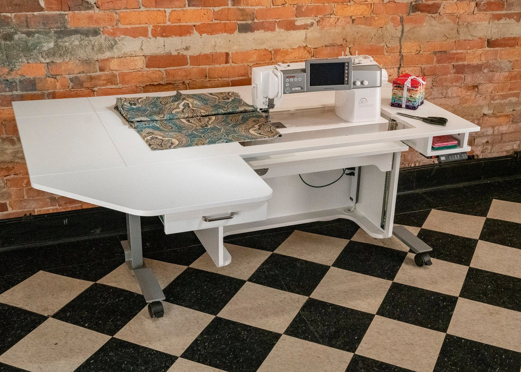 If you need even more space for your Model 9100 table, you can easily add the 910EXT, left-side drop leaf and drawer extension, which provides an expandable work surface. Using this feature will allow you to create and work on larger projects with ease.