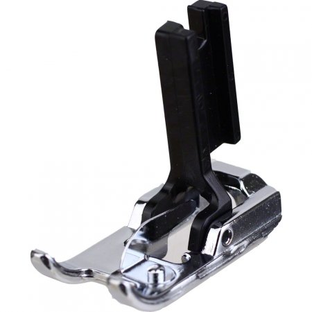 The fringe foot leaves threads loose over the center guide so they can be trimmed to become fringe.