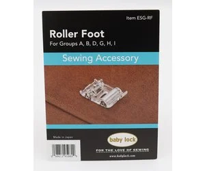 The Baby Lock Roller Foot is used to help feed slippery fabrics such as silk, leather, vinyl and elastic. The textured rollers provide more control of the fabric by keeping the fabric tightly pressed against the feed dogs. The rollers move the foot freely across the fabric allowing it to ride over various thicknesses.
