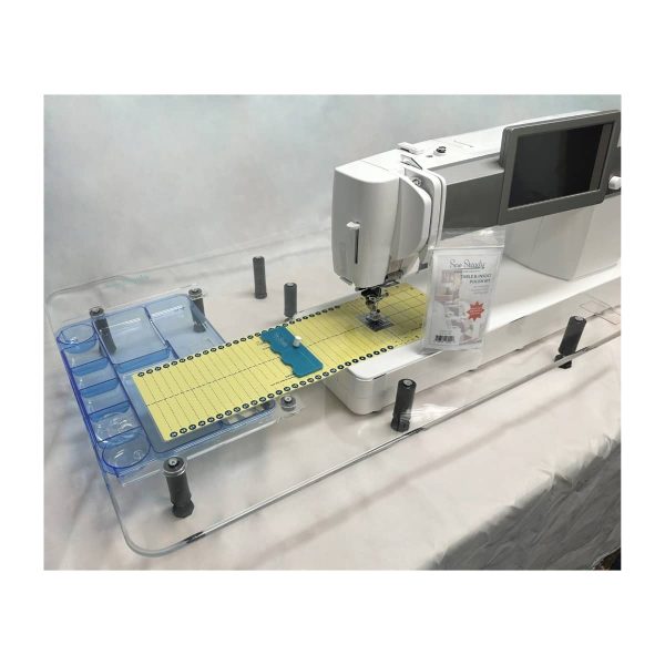 All Sew Steady Tables are made to order to fit a specific machine. They’re made out of high-quality acrylic, and come with the following features: Rounded front edge for comfort, use it as a light box and easy underneath storage, permanent inches & metric ruler printed on underside of table. Accessories for the table can be purchased separately.